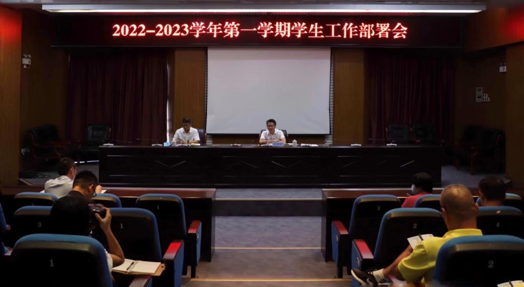 新学期、新起点,新目标、新作为。9月8日下午,学校召开2022-2023学年第一学期学生工作部署会。校党委副书记江潮炳出席会议并讲话,学生工作部(处)部(处)长毛茂峰主持会议。各二级学院副书记、学工办主任、团委书记及一线辅导员,学生工作部(处)、团委处科级干部参加了会议。