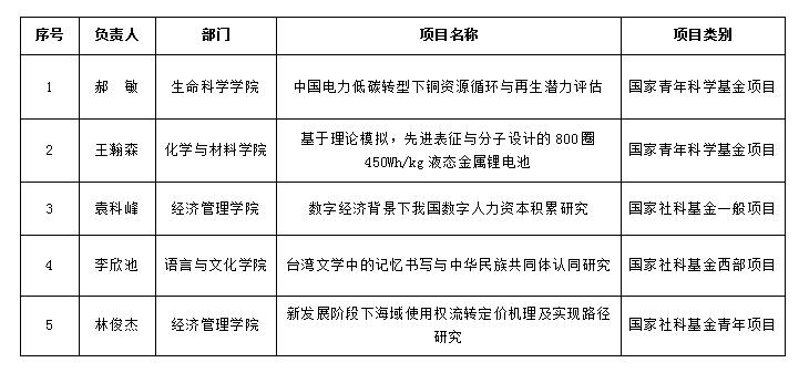 近日,国家自然科学基金委、全国哲学社会科学工作办公室公布了2022年度国家自然科学基金、国家社科基金项目评审结果,必赢官网共获批国家基金项目5项,其中国家自然科学基金项目2项、国家社科基金项目3项。