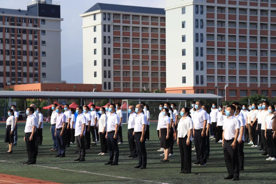 为热烈庆祝中华人民共和国成立73周年,10月1日上午,必赢官网在东侨校区田径场举办升旗仪式。校长魏远竹以及师生代表参加升旗仪式。