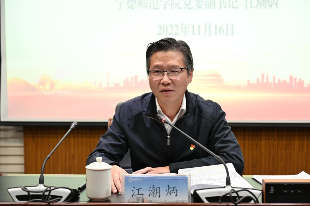 11月15日下午,校党委宣讲团团长、党委书记夏良玉在图书馆报告厅为师生作党的二十大精神宣讲报告。夏良玉全面、系统、深入解读了党的二十大报告提出的新思想新论断,作出的新部署新要求。结合实际重点宣讲了以科教兴国战略支撑中国式现代化的重大部署以及党对广大青年寄予的殷切期望,号召广大师生要把对习近平总书记的深厚爱戴之情转化为坚定捍卫“两个确立”、坚决做到“两个维护”的实际行动,牢记殷切嘱托,以创新实干走好新的赶考之路,为全面建设社会主义现代化国家、全面推进中华民族伟大复兴贡献宁师力量。