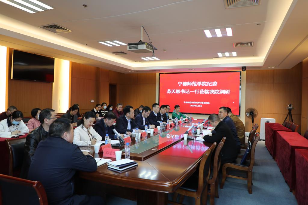 为深入贯彻落实二十届中央纪委二次全会和省纪委十一届三次全会精神,3月8日下午,校党委委员、纪委书记、监察专员苏天恩带队赴附属宁德市医院调研。附属宁德市医院党政班子成员、纪委委员、部分科室负责人、党支部书记和校纪检监察室相关负责人参加调研会。