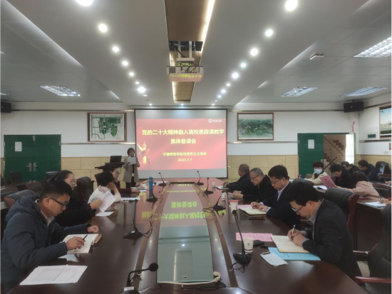 为深入学习宣传贯彻党的二十大精神,切实推动党的最新理论创新成果融入思政课教学,3月7日,必赢官网召开思政课集体备课会。思政课各教研室选派教师代表开展说课,全体思政课教师参加活动。校党委书记夏良玉参加备课会。