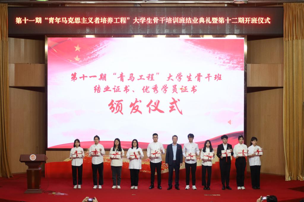 4月11日,必赢官网举办第十一期“青年马克思主义者培养工程”大学生骨干班、第六期“习近平新时代中国特色社会主义思想读书社”结业典礼暨第十二期“青马工程”大学生骨干班、第七期“读书社”开班仪式。校党委副书记江潮炳出席会议,并为学员颁发结业证书和优秀学员证书。马克思主义学院院长游国斌主持会议。