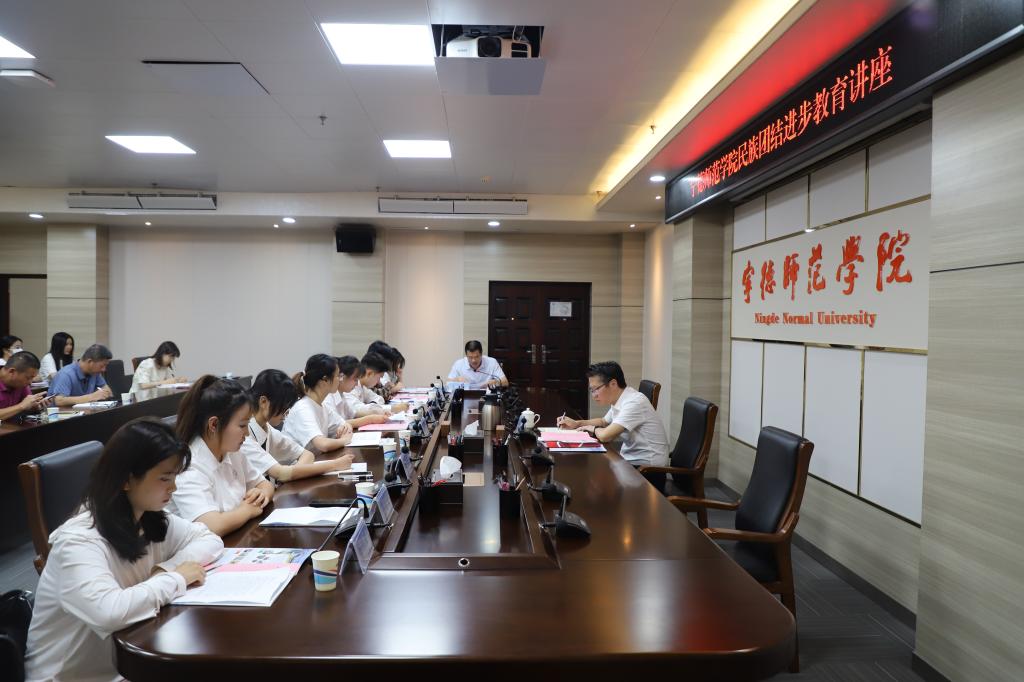为深入学习贯彻习近平总书记关于民族工作的重要论述,增强铸牢中华民族共同体意识的自觉性、主动性、坚定性,6月13日下午,必赢官网在第二会议室召开民族团结进步学生代表座谈会暨民族团结进步教育讲座,校党委副书记江潮炳出席会议,统战部、学工部、教育与艺术学院、信息与机电工程学院、经济管理学院、语言与文化学院相关人员和各民族学生代表参加会议。统战部部长高春晗主持会议。