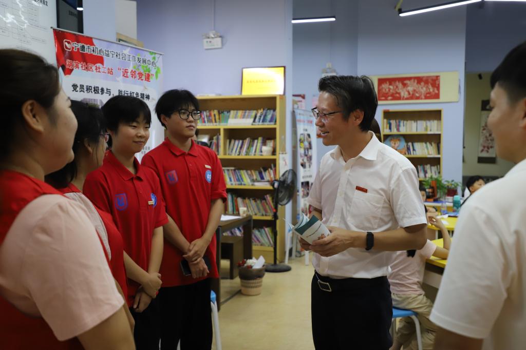 7月11日下午,校党委副书记江潮炳带领暑期社会实践领导小组成员一行深入蕉城区湖滨社区与东侨环东湖巡防队红色驿站看望慰问大学生暑期社会实践团队,为师生送去关怀和问候。