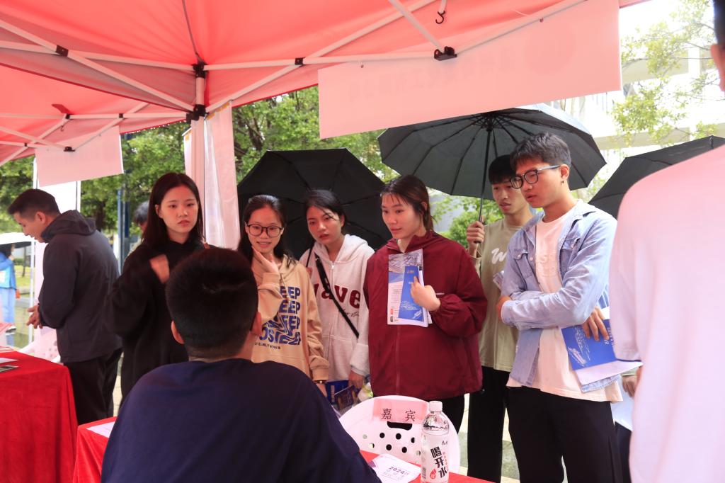 招聘会现场人头攒动,并未受雨天影响,气氛依然热烈,同学们带着简历在企业招聘展台前咨询用人需求、职业发展等问题,企业招聘人员热情为前来求职的毕业生介绍企业情况和工作内容,学生不时递交应聘申请表。据悉,当天共有110家用人单位到场,涉及教育培训、机电制造、材料化工、生物医药、金融贸易、旅游服务等行业,提供就业岗位2616个,当天共有850多名毕业生投递了简历,达成初步就业意向的学生有186名。