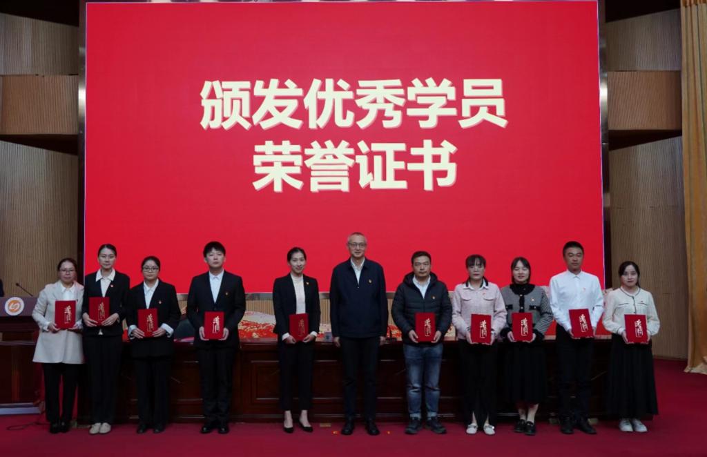 夏良玉和江潮炳分别为“青马工程”第一期青年干部、青年教师培训班学员颁发优秀学员证书和结业证书,并为“青马工程”第二期青年干部、青年教师培训班授旗。