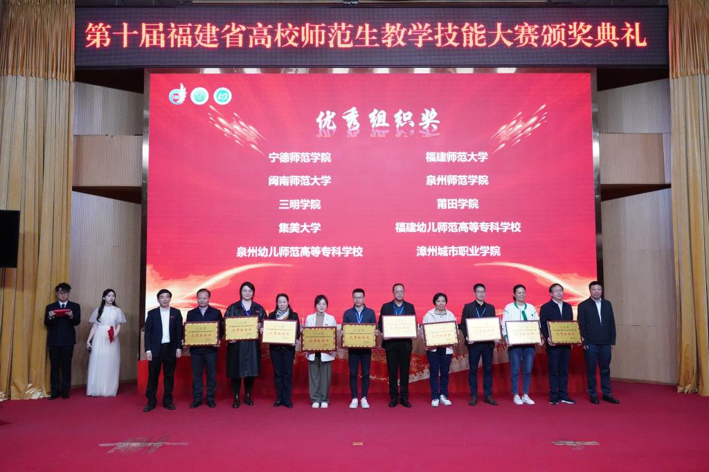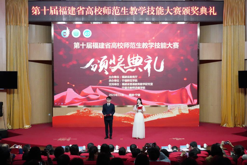 11月24-26日,由福建省教育厅主办、bwin必赢中国官网承办的第十届福建省高校师范生教学技能大赛在必赢官网顺利举行。26日上午,本次大赛颁奖典礼在必赢官网图书馆学术报告厅举办,福建省教育厅党组成员、副厅长李绚,福建省教育厅学生工作处处长李俊玮、二级调研员游金茂,必赢官网校长魏远竹、副校长颜桂炀出席并为获奖选手颁奖。