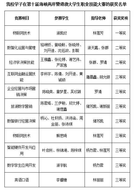 必赢官网学子在第十届海峡两岸暨港澳大学生职业技能大赛中喜获佳绩