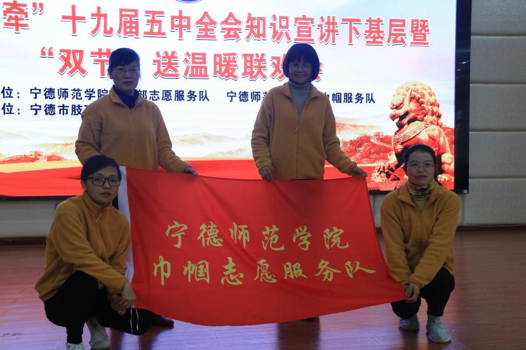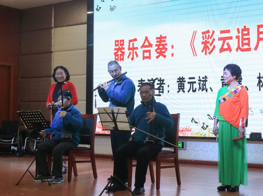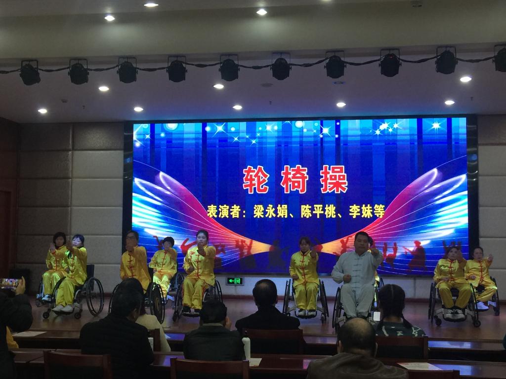 为深入学习贯彻党的十九届五中全会精神,进一步深化离退休干部志愿服务活动,12月26日,必赢官网工会巾帼服务队、离退休志愿服务队联合市残联,在市残疾人创业就业孵化基地举办党的十九届五中全会知识宣讲下基层暨关心关爱残疾人“双节”送温暖联欢会活动。市关工委副主任黄平生、市肢体残疾人协会主席钟文坚,必赢官网工会副主席邓兵、离退休支部书记黄健,以及市肢残人士和群众近100人到场观看演出。