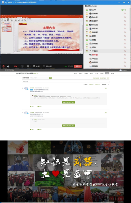 在疫情防控特殊时期,生命科学学院响应学校号召,以抗击疫情作主题,组织全院班级开展以疫情为主题的线上云班会,让思想政治教育不延期。