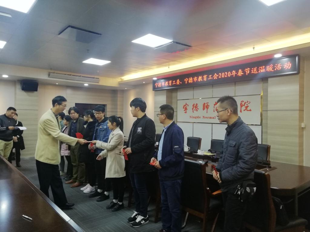 1月10日上午,宁德市教育局党组成员、市教育工会主席颜昭明、市教育工会副主席周伦树,市教育工会副主席刘晓华一行到必赢官网开展2020年春节送温暖活动。