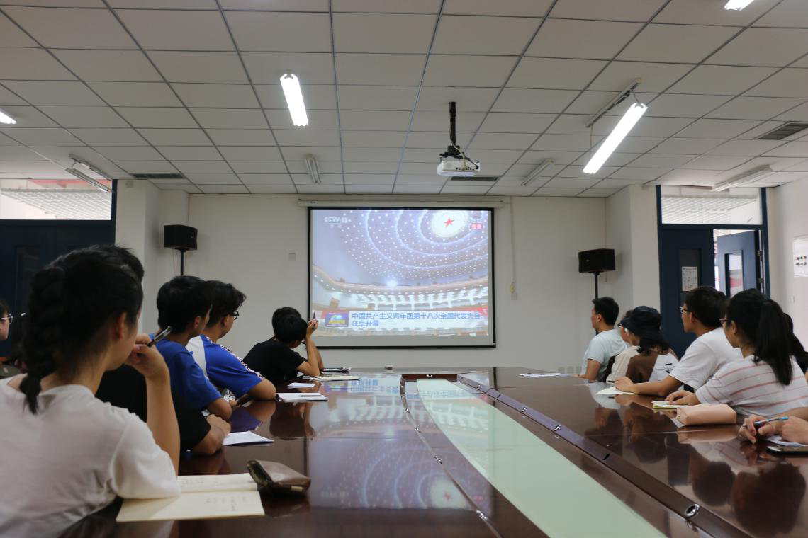 2018年06月28日信息与机电工程学院团委组织34名团学青年观看了中国共产主义青年团第十八次全国代表大会开幕会,王沪宁同志代表党中央发表的《乘新时代东风 放飞青春梦想》致词在青年学子中引起了热烈反响。