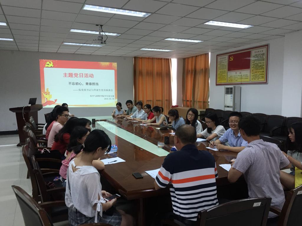 2018年5月30日,化学与材料学院党委书记游东宏在院会议室与2018届毕业生党员进行毕业前夕的交流座谈,座谈会由学工办负责人王昌雷主持。