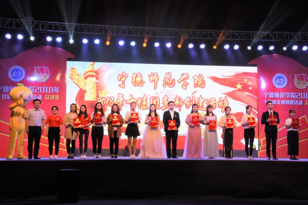 经过现场总分评比,2016汉语言文学非师班团支部、2016数学与应用数学2班团支部、2015数学与应用数学3班团支部、2016数学与应用数学3班团支部、2016电子信息工程班团支部、2016级市场营销1班团支部、2015级小学教育1班团支部、2015级食品与科学班团支部、2016级化学班团支部、2015级汉语言文学非师班团支部、2016级环境与工程班团支部、2016级小学教育1班团支部这12个班级获得十佳团支部的荣誉称号。2016级市场营销1班团支部获得了最佳人气奖。