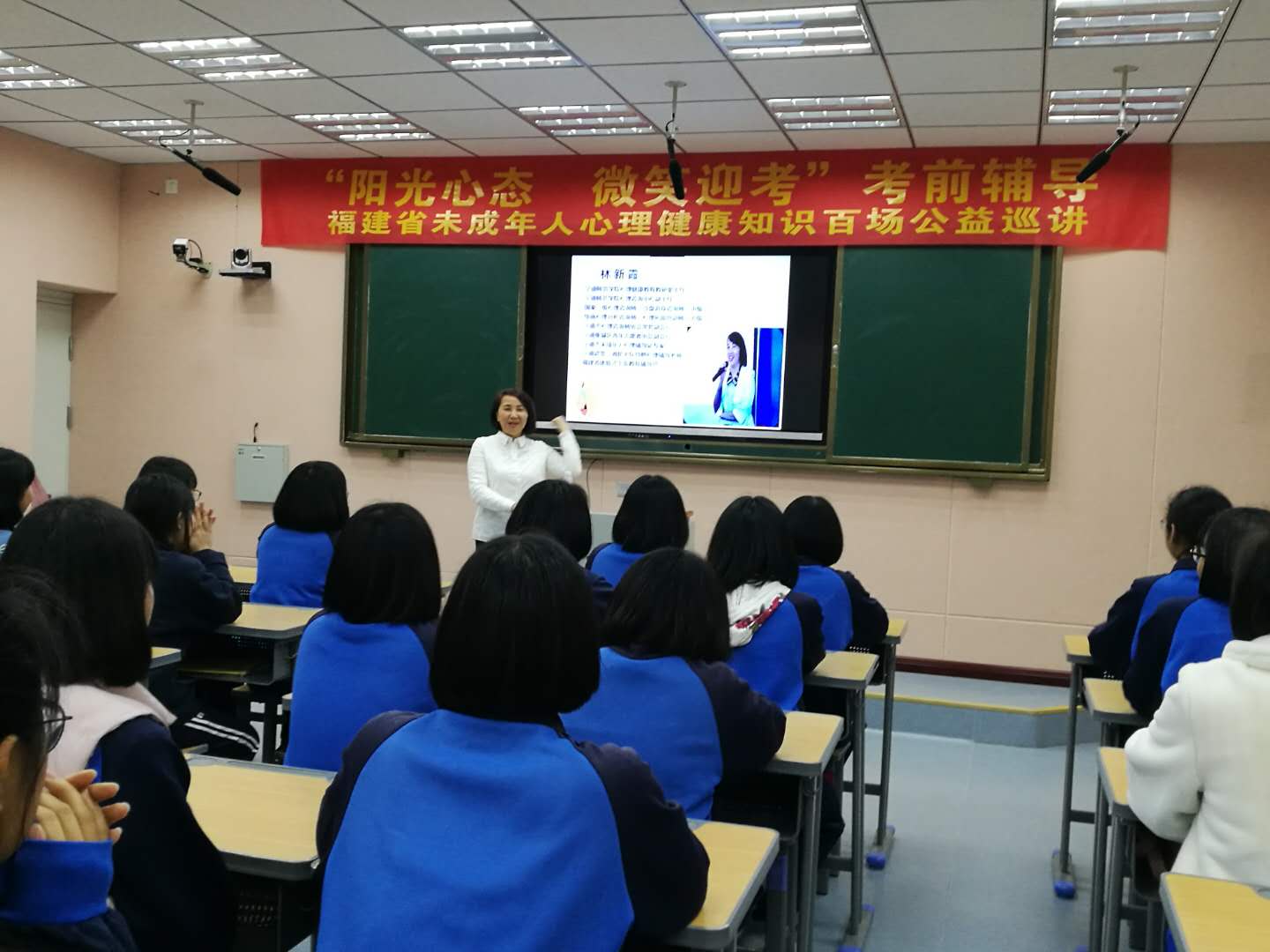 林新霞老师在高级中学开展”阳光心态 微笑迎考“讲座