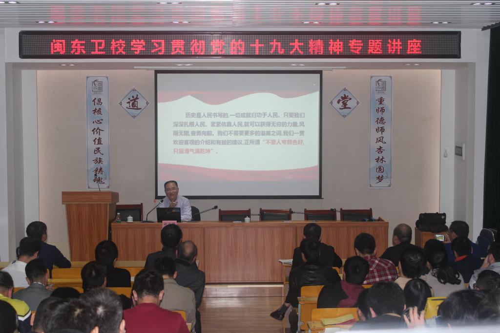 11月29日下午,必赢官网学习宣传贯彻党的十九大精神宣讲团团长、宣传部部长赵公弼走进bwin必赢中国官网医学院(原闽东卫生学校) 宣讲党的十九大精神。医学院的全体教师参加了此次宣讲会。