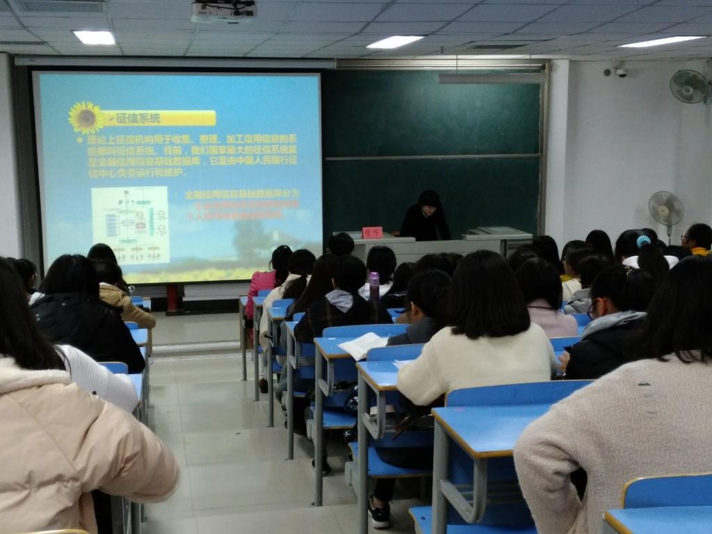 讲座先由个贷中心卓巧园主任为同学们进行《征信就在您身边》的大学生征信知识讲座,她从一则征信案例开始,对“诚信,信用,征信”进行对比,概述了个人信用报告的内容,征信对个人的影响,以及拥有良好的征信记录的方式方法。