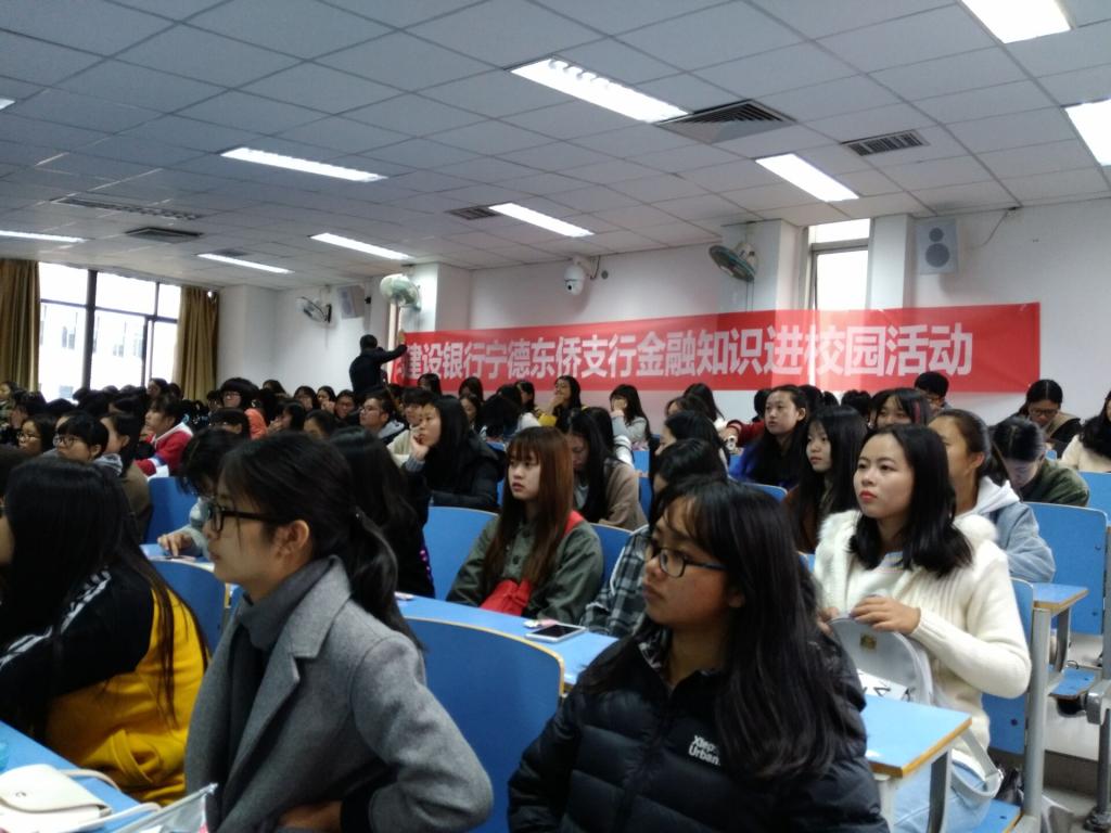 2017年11月25日下午必赢官网在东侨校区讲堂群205举办互联网金融知识进校园第二场专题讲座。本次讲座邀请了中国建设银行东侨支行唐耀辉行长,王光华主管,个贷中心卓巧圆主任,张宁经理来校宣讲,语言与文化学院170多位新生聆听了讲座。学工处龚劲丹副处长参加本次会议,讲座由学生资助管理副主任欧嘉烟主持。