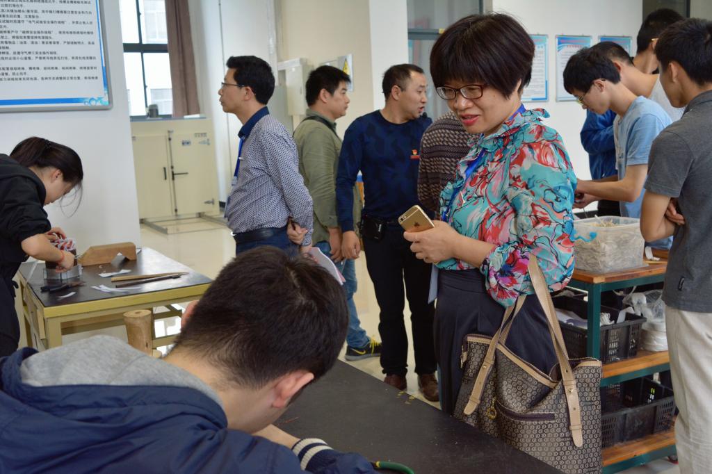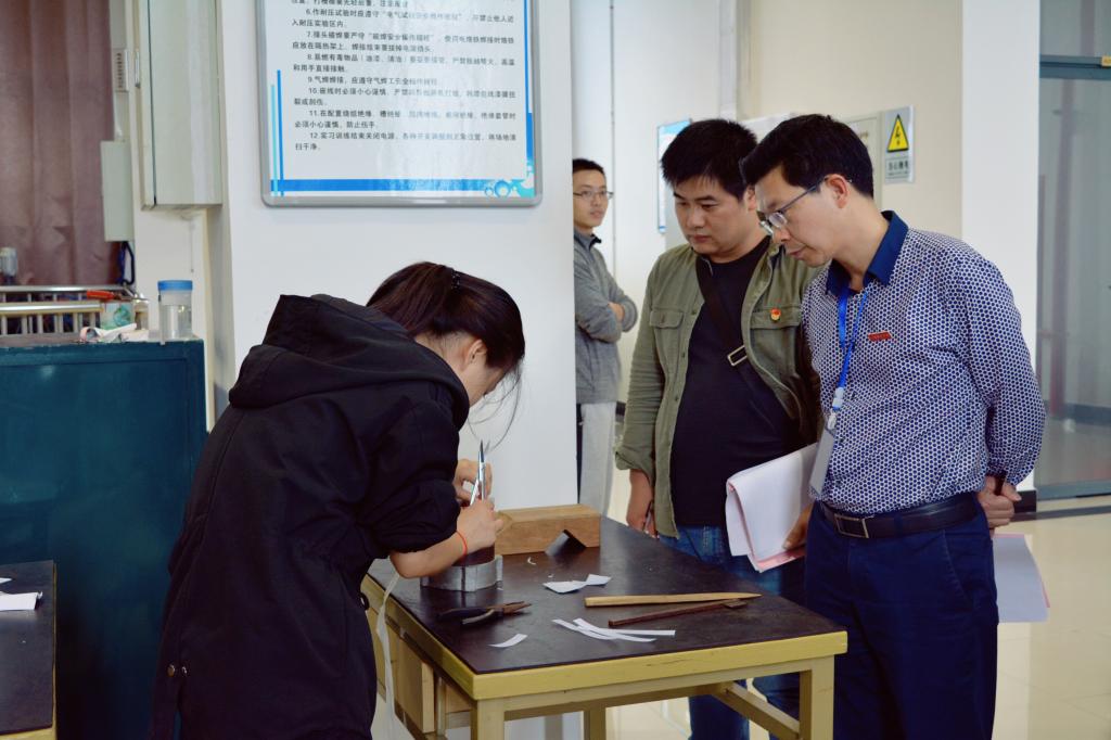 11月9日下午,校教学督导组吴立志副主任和余碧春副主任带领校督导组到信息与机电工程学院逸夫实训楼电机制造工艺实训现场观摩了梁国祥工程师主讲的《电机制造工艺实习》实训课,教学督导老师主要观摩了“嵌线工艺和绕组的绝缘配置实习”和“绕组端部整形、接线、引线制作实习”两道工序。