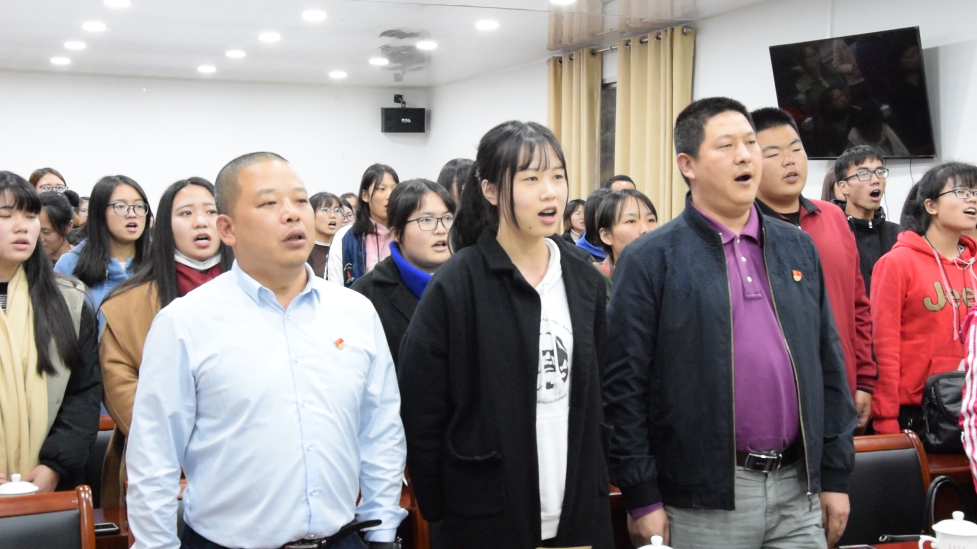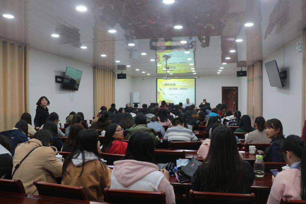 在下党小学会议室,廖翔华副书记为全院师生带来党课《摆脱贫困--四下基层,党群连心》,教导大家要如何发挥榜样示范作用,更好地践行十九大精神。同时,还举办了一场师生交流会,结合十九大报告及活动体会,大家积极发言,反响热烈,伴随着《歌唱祖国》的红歌传唱活动圆满结束。