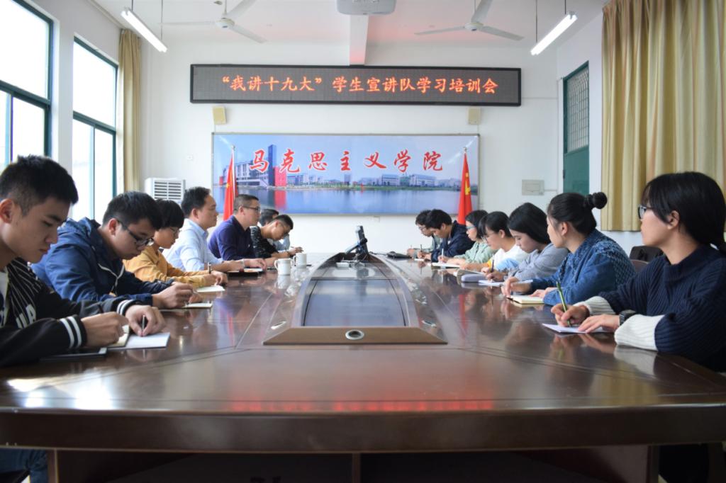 必赢官网于10月31日成立了“我讲十九大”学生宣讲队,成员主要包括习近平新时代中国特色社会主义思想读书社、第六期青马工程的骨干学员及马克思主义学院优秀学生,共22人。下一阶段,宣讲队将深入学校各社团、各班级和周边农村、社区、实践基地大力宣传十九大精神。