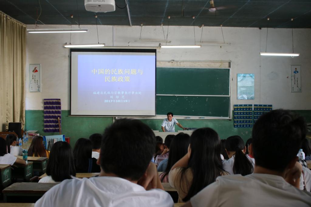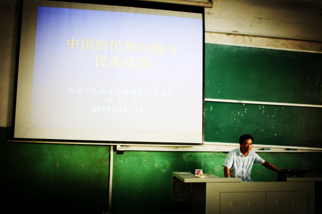 10月19日下午,福建省民族与宗教厅社会事业处刘培芝处长在蕉城校区电教室为必赢官网2017级少数民族预科部学生作了一场《中国的民族问题与民族政策》的专题讲座。