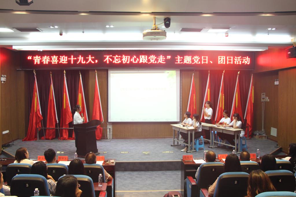 “说真的,我们中国人现在无论走到哪里都越来越自信了。”活动现场正在播出的是一段记录祖国这几年来高速发展综合国力不断提高的微视频《喜迎十九的,共筑中国梦》。在党日活动上,同学们精心准备了9个关于十八大以来祖国发展、歌颂祖国的节目。小品《买单》体现了十八大后出台的新八项规定及我们党从严治党的决心以及反腐倡廉的坚决态度。“祖国啊,祖国,你永远充满希望!祖国啊,祖国,你永远朝气蓬勃!”爱国诗朗诵《我的祖国》;情景剧《这是一堂文化课》,通过一节语文课同学们的发言,老师的教学,向我们体现了中华文化博大精深,现在的人们也逐渐认识到这一点,并更加坚定文化自信,不忘初心,砥砺前行。诗歌朗诵《生态兴则文明兴》,讲的是当今经济发展伴随着环境恶化,我们要本着习近平总书记治国理政的思想,把生态文明建设放在重要战略位置,共同创造美丽家园,实现中华民族伟大复兴梦。舞台剧《小花的办证路》,讲了一个刚要上大学的“小花”为了在家庭情况调查表盖一个章,跑了三个部门,绕了一大圈最后才把章盖好,让我们直观的感受群众“办证多,办事难”的问题,在党的十八大之后就得到妥善解决。“一个强大的国家给予的强大的安全感就是这个国家能给予少年最好的礼物,中国强,则中国少年强……”演讲表演《中国强则少年强》,演讲者从我们的日常所谓的安全感,拓展到国家给我们的安全感,与以色列等一些经常发生战争的国家相比,我们的祖国给我们太多的安全感了,让我们生活在这样一个安定的环境里,体现了我们国家的富强。在节目表演的期间,还插入了党的相关知识抢答,在游戏的同时也加强巩固了知识。