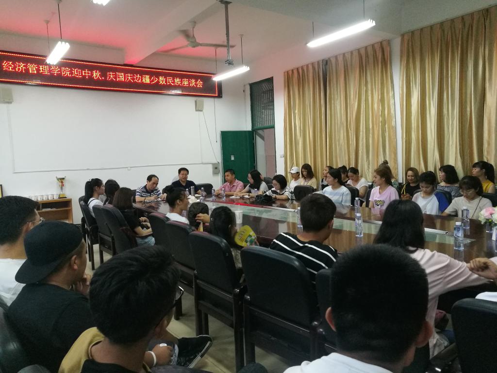 9月28日,国庆、中秋佳节来临之际,经济管理学院召开了“迎中秋,庆国庆”边疆少数民族学生座谈会。经济管理学院院长游国斌、党委书记郑立文、党委副书记陈新柯,辅导员邱文君、杜艳芳、吴玉芳,以及来自新疆、西藏等地的20多名少数民族地区的同学代表参加座谈会。