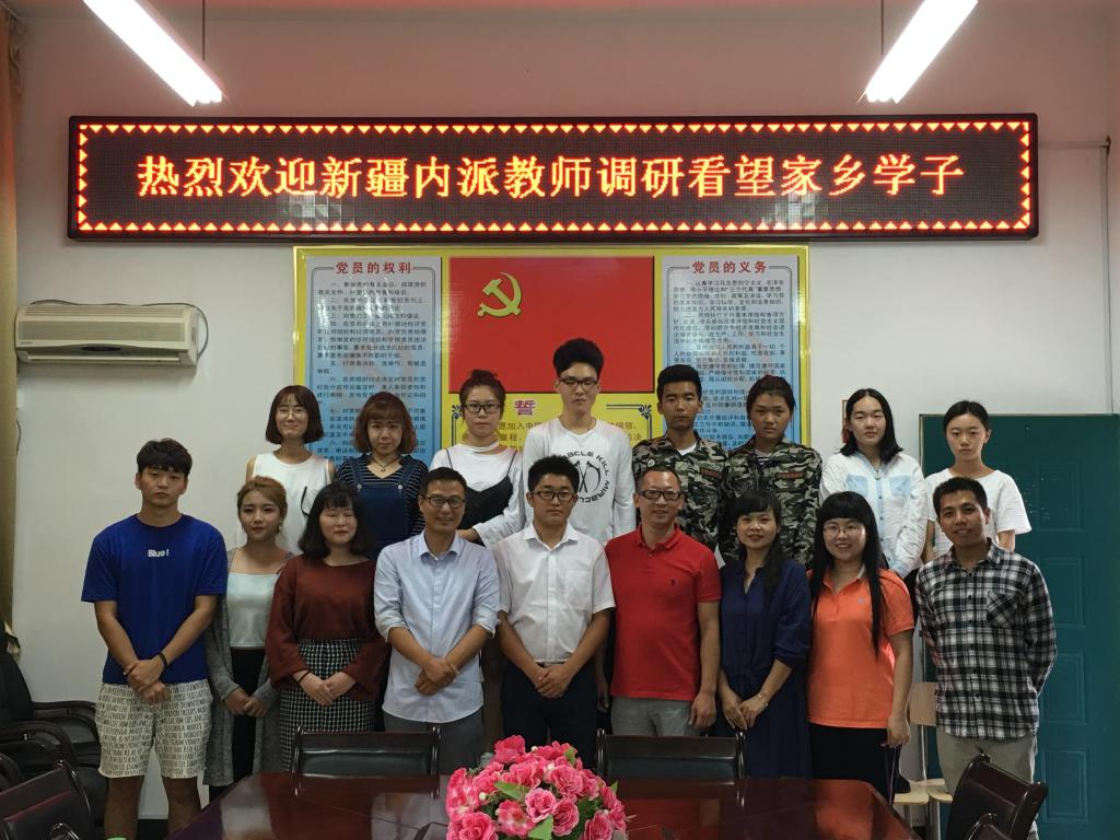 周建辉老师向老师同学们介绍了自己在新疆的随笔,表达了对新疆以及新疆朋友的怀念和牵挂。为了让新疆内派老师更加了解本校,周老师还播放了本校的宣传片《放飞理想》,进一步介绍了本校的宗旨和理念。最后,老师和学生们合影留念。