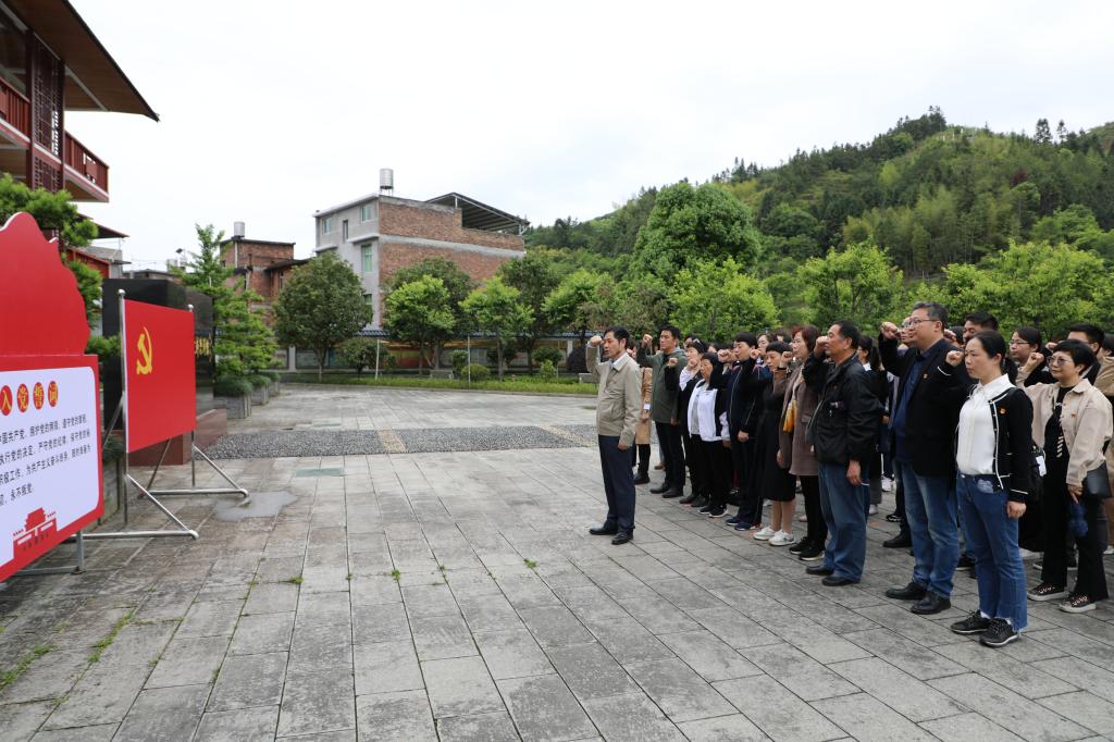 当日下午,陈子春一行来到古田县黄孝敏烈士史料陈列馆。解说员带领大家了解了黄孝敏烈士不平凡的一生和卓越的丰功伟绩。黄孝敏烈士艰苦奋斗、无私奉献的精神和工作作风,对党无限忠诚的革命情怀,深深触动了在场每一位党员。随后全体党员干部面向党旗,在陈子春的带领下重温了入党誓词,“我志愿加入中国共产党,拥护党的纲领……”一句句庄严的入党誓词回荡在陈列馆上空。