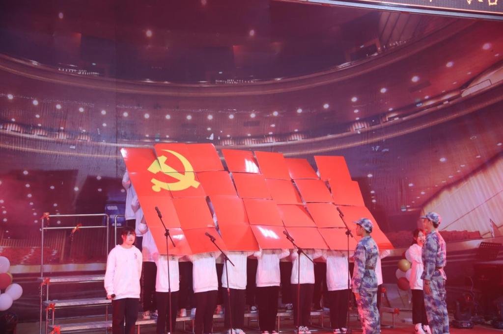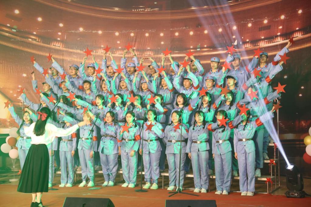 《在灿烂阳光下》《光荣啊,中国共青团》《没有共产党就没有新中国》《唱支山歌给党听》……同学们饱含深情、声情并茂,一首首歌曲、一支支队伍,轮番唱响,余音绕梁,不绝于耳。《保卫黄河》《红星歌》深情演绎了中国共产党走过的风雨历程是光辉灿烂的历程;《我和我的祖国》《爱我中华》表达了对国家的美好祝愿;《强军战歌》《打靶归来》充分展示了当代军人听党指挥、能打胜仗、作风优良的精气神。