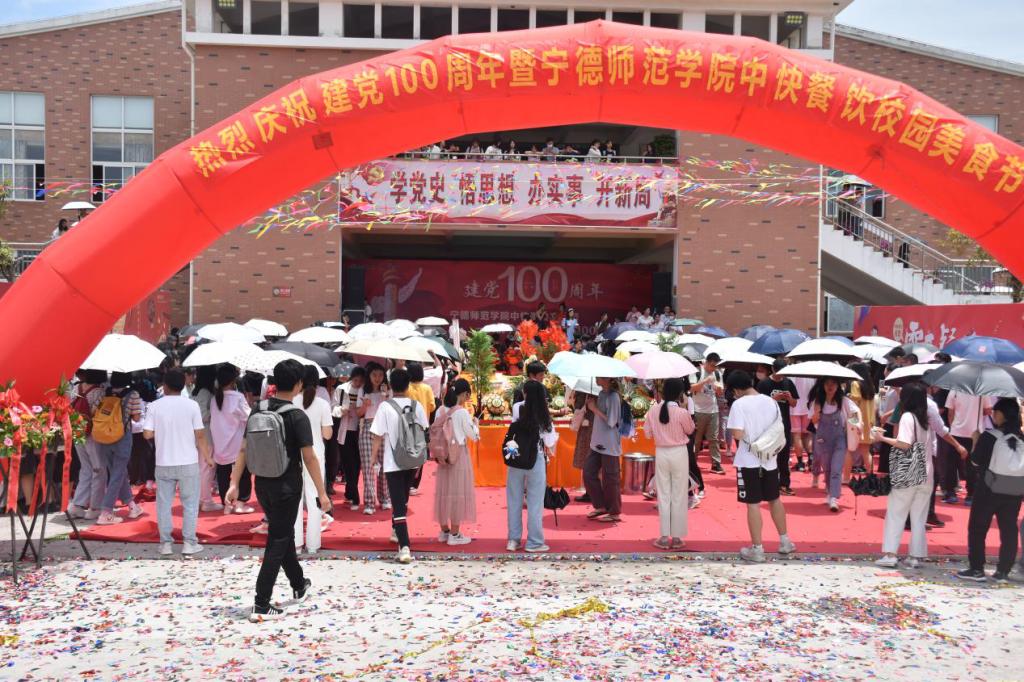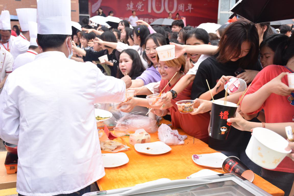 为庆祝中国共产党成立100周年,丰富校园文化生活,进一步宣传校园健康饮食文化,更好地为广大师生提供优质的餐饮服务,由资产后勤管理处和中快餐饮公司联合承办的庆祝建党100周年校园美食文化节活动于5月20日上午在第一食堂举行。